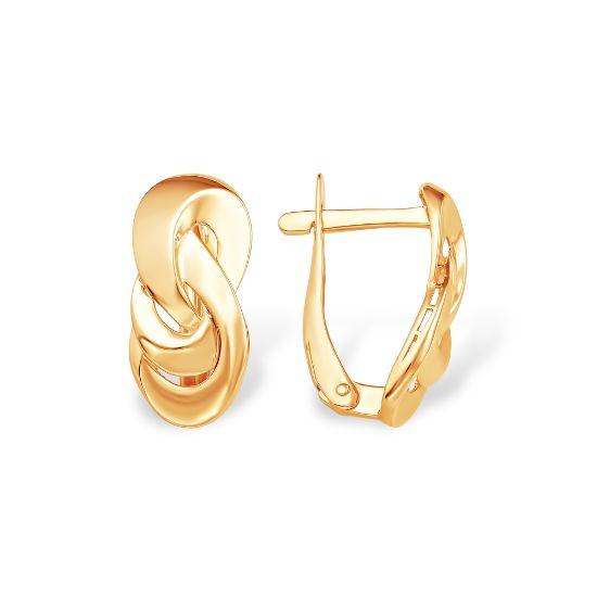 Эти изысканные серьги из красного золота 585 пробы станут настоящим украшением вашего образа. Их уникальный дизайн в виде переплетающихся линий придаёт изделию элегантность и утончённость.