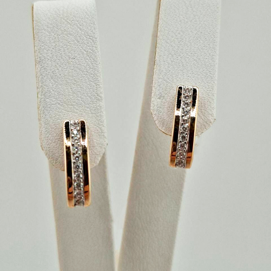 Изысканные серьги из красного золота 585 пробы, украшенные сверкающими фианитами, станут прекрасным дополнением к вашему образу. Эти серьги выполнены в классическом стиле, который подходит как для повседневного ношения, так и для особых случаев.