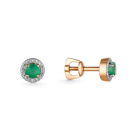 Элегантные серьги-пусеты из красного золота 585 пробы станут изысканным украшением для любого образа. Центральным элементом дизайна является гидротермальный изумруд, окруженный сиянием бриллиантов. Этот утонченный аксессуар подчеркнет вашу индивидуальность и станет прекрасным дополнением как к повседневному, так и к вечернему стилю.