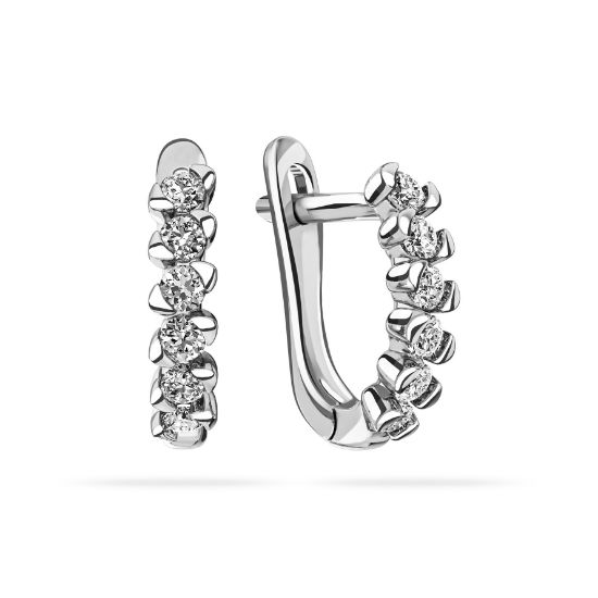 Представляем изысканные серьги из белого золота, украшенные сверкающими фианитами. Это украшение станет изюминкой любого образа — от повседневного до вечернего.
