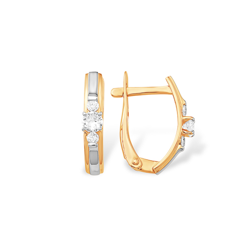 Дизайн: лаконичный, но выразительный. Комбинация золотых и серебристых вставок подчёркивает геометрию изделия. Центральные фианиты акцентируют внимание и добавляют динамики.