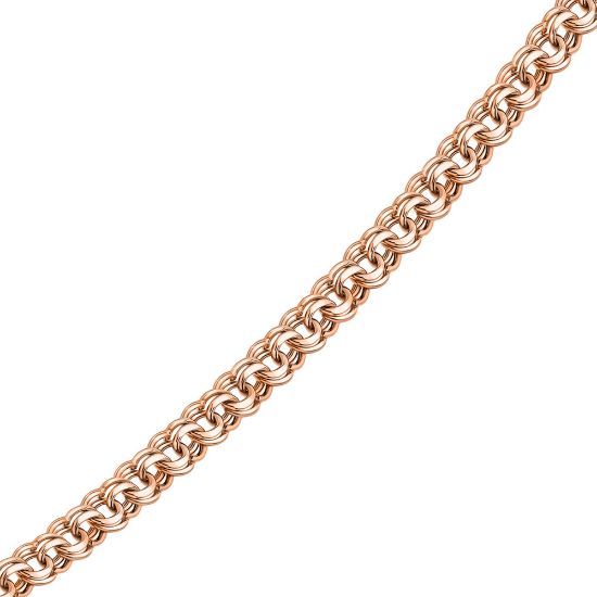 Премиальное украшение — цепь из красного золота 585 пробы с изысканным плетением Бисмарк (шпрингелевое). Каждое звено представляет собой искусное сплетение нескольких колец, создающее неповторимый узор.
