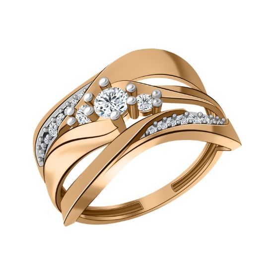 Представляем изысканное кольцо из золота, украшенное сверкающими фианитами. Этот аксессуар станет настоящей жемчужиной вашей коллекции!
