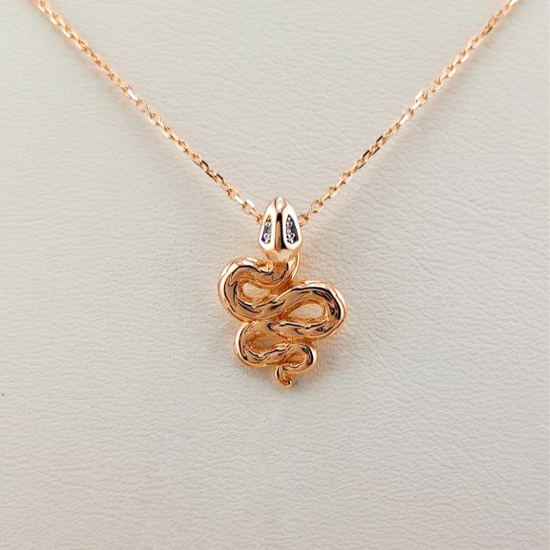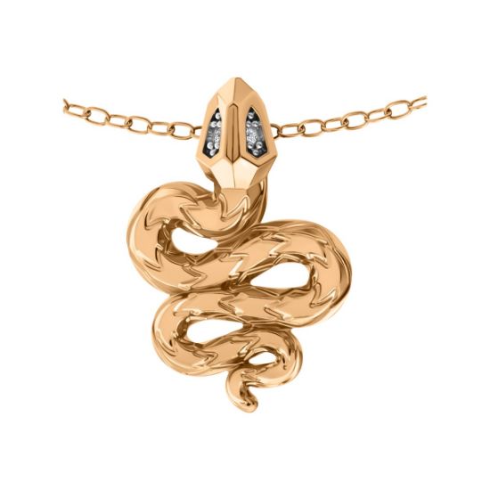 Дизайн: Подвеска выполнена в форме змеи, что символизирует мудрость, силу и защиту. Змея изображена в изящной позе, с акцентом на голову, украшенную фианитами, которые добавляют блеска и элегантности.
