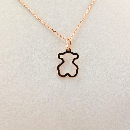 Подвеска выполнена в форме мишки с минималистичным дизайном. Она изготовлена из золота и имеет гладкий, блестящий поверхность. Контур мишки четко очерчен, без лишних деталей, что придает украшению элегантность и утонченность. Подвеска оснащена кольцом для крепления к цепочке или браслету. Благодаря своему простому, но стильному дизайну, она подойдет как для повседневного ношения, так и для особых случаев.