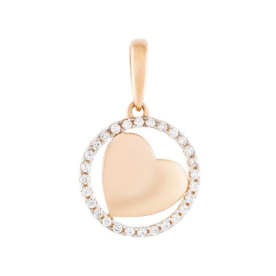 Подвеска выполнена из красного золота 585 пробы, что гарантирует её долговечность и высокое качество. Основной элемент украшения — сердце, символизирующее любовь и романтику. Оно окружено кольцом из мелких фианитов, которые придают изделию блеск и изысканность.