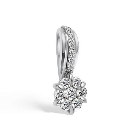 Эта изысканная подвеска станет настоящим украшением вашего образа. Выполненная из белого золота, она украшена россыпью бриллиантов, которые создают эффектный блеск и подчеркивают утонченность дизайна. Центральный элемент подвески выполнен в форме цветка, что добавляет изделию нежности и романтичности.