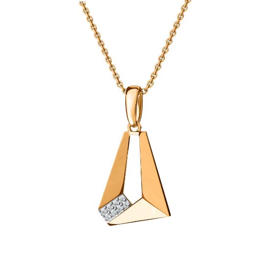 Эта изысканная подвеска из золота 585 пробы станет прекрасным дополнением к вашему образу. Она выполнена в современном геометрическом стиле, что делает её универсальной и подходящей как для повседневного ношения, так и для особых случаев.
