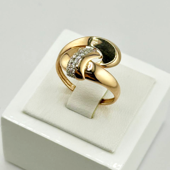 Дизайн: Кольцо выполнено из золота с плавными линиями, создающими эффект перекрещивания. Это придает украшению современный и элегантный вид.