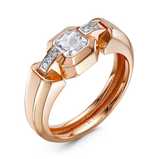 Золотое кольцо с фианитами отличается современным и элегантным дизайном.