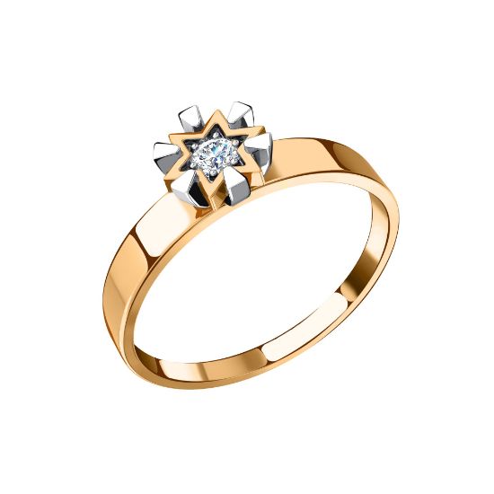 Элегантное кольцо из красного золота с центральным фианитом, окружённым геометрическим узором, станет ярким акцентом в вашем образе.