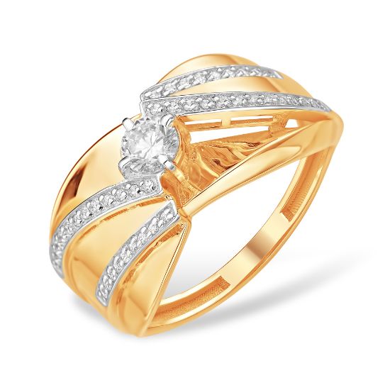 Элегантное кольцо из золота 585 пробы с изысканным дизайном. Центральным элементом украшения является крупный фианит, окружённый изящными вставками из мелких фианитов, которые подчёркивают его блеск.