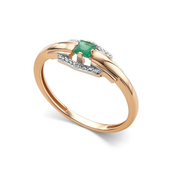 Это кольцо из золота 585 пробы выполнено в изысканном стиле. Центральным элементом украшения является изумруд квадратной огранки, который подчеркивает свою природную красоту и насыщенность цвета. Камень окружен изящной оправой из красного золота, которая гармонично сочетается с белыми золотыми элементами, украшенными мелкими бриллиантами. Эти бриллианты добавляют кольцу блеска и элегантности, создавая эффектный контраст с зеленым оттенком изумруда.