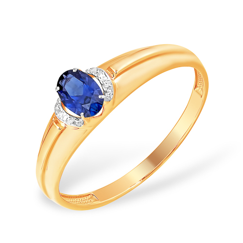Это кольцо выполнено из красного золота и отличается элегантным и утончённым дизайном. Центральным элементом украшения является крупный овальный сапфир насыщенного синего цвета, который придаёт изделию особую изысканность. Сапфир окружён мелкими бриллиантами, которые подчёркивают его блеск и создают эффект сияния.