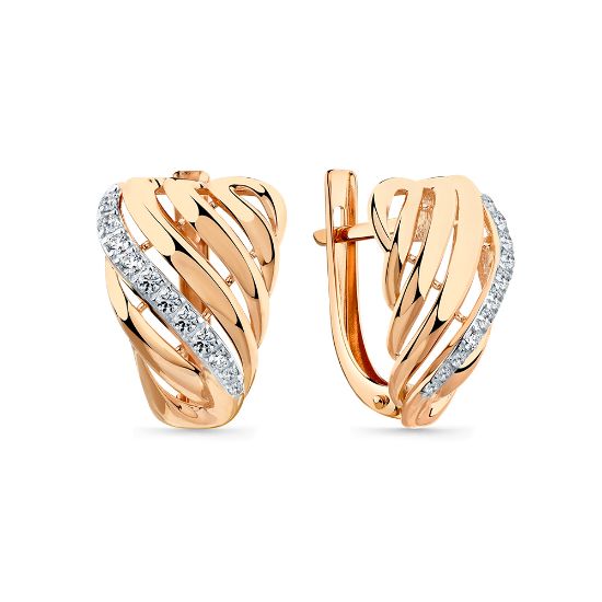 Эти серьги из красного золота 585 пробы с фианитами — это воплощение элегантности и утончённости. Их дизайн выполнен в виде изящных переплетённых линий, которые создают эффект движения и лёгкости. Украшение дополнено дорожкой из сверкающих фианитов, которые придают серьгам блеск и изысканность.