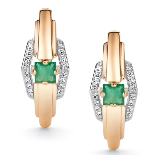 Эти изысканные серьги станут настоящим украшением вашего образа. Они выполнены из золота двух оттенков — желтого и белого, что придает им особую элегантность. Центральным элементом дизайна являются изумруды квадратной огранки, которые подчеркивают природную красоту камня и создают яркий акцент. Вокруг изумрудов расположены бриллианты, добавляющие украшению блеска и утонченности.