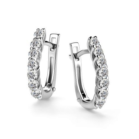 Эти изысканные серьги из белого золота украшены сверкающими бриллиантами, которые создают эффект роскоши и элегантности. Каждая серьга выполнена в форме полукруга, что подчеркивает их утонченность и стиль. Бриллианты расположены вдоль всей длины серьги, создавая непрерывную линию блеска, которая привлекает внимание и дополняет любой образ.