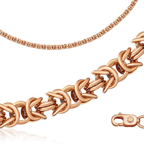 Сложная техника плетения. Каждое звено создается вручную, что делает изделие уникальным. Звенья переплетаются в нескольких плоскостях, создавая объемный и плотный узор.