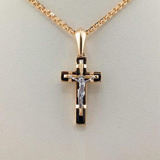 Подвеска в виде креста из красного золота — это изысканное украшение, которое сочетает в себе стиль и символизм.