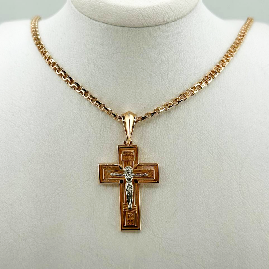 Подвеска крест из красного золота 585 пробы — это изысканное украшение, элегантный дизайн с изящными изгибами и минималистичным стилем делает подвеску универсальной для повседневного и вечернего образа.